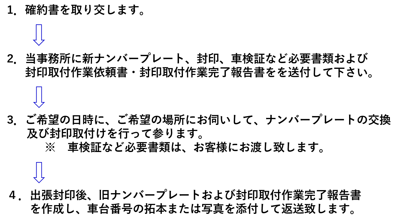 埼玉県行政書士会では、全国の自動車登録業務に精通した行政書士間で事前に「確約書」を結び、丁種封印の再々委託がおこなうことができるるようになりました。