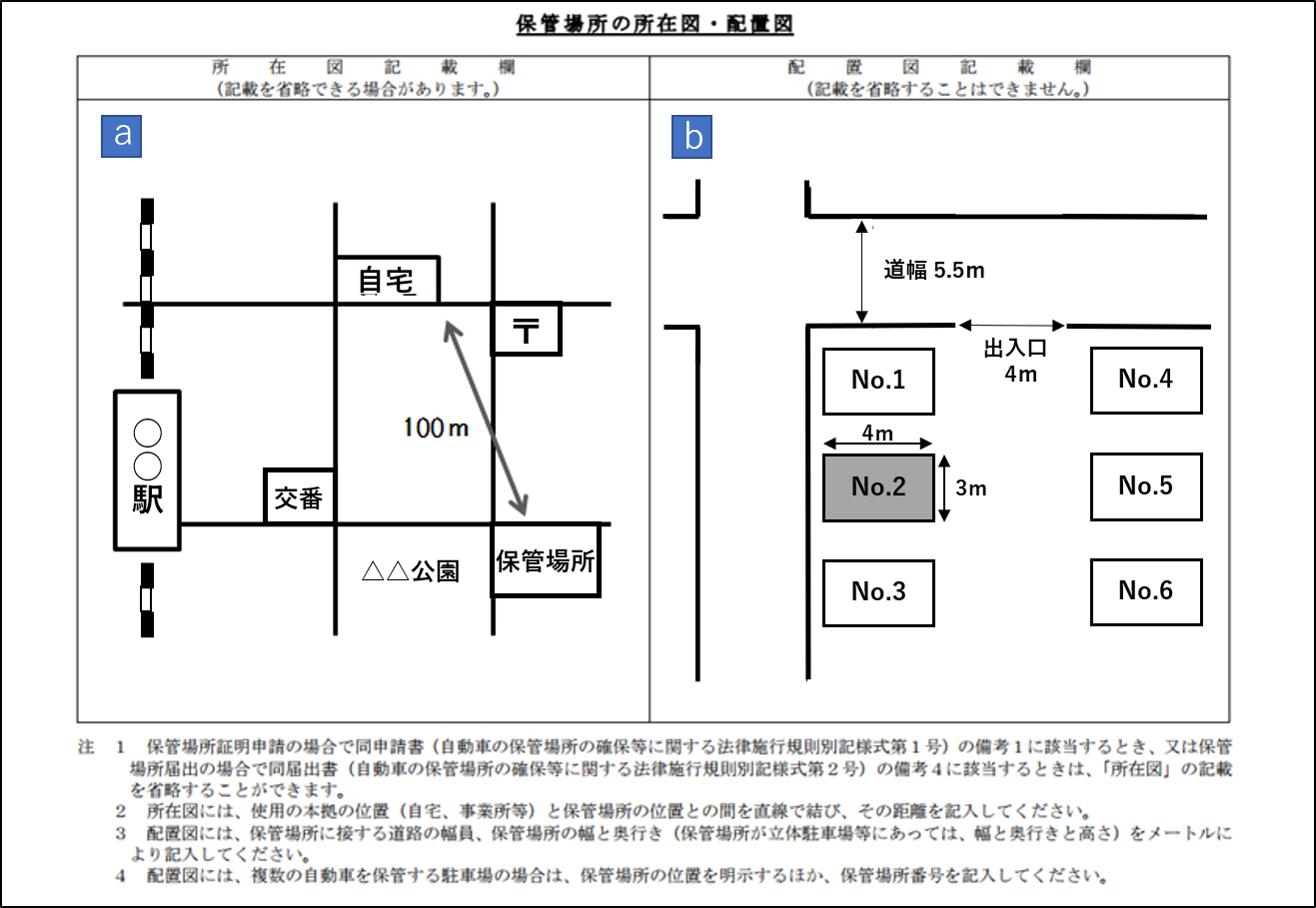 1.自動車保管場所届出書