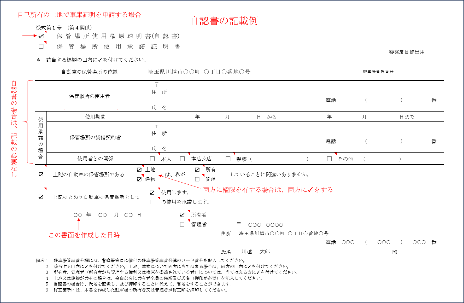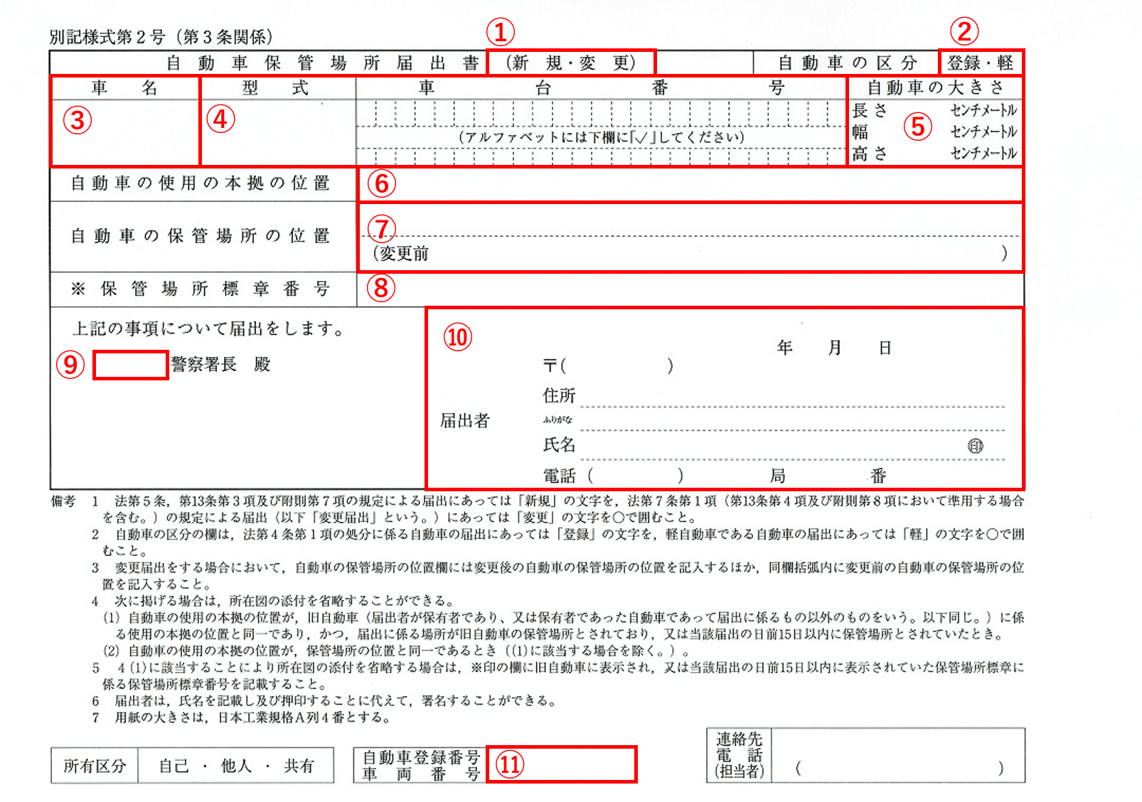 軽自動車保管場所届出書類の書き方